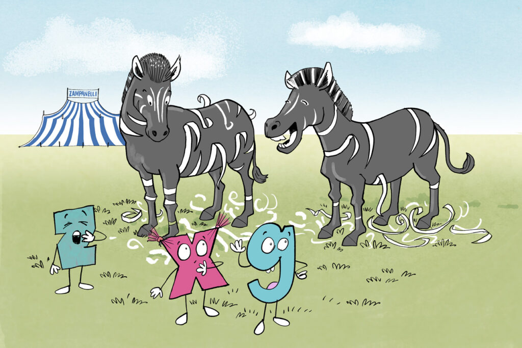 Zettchen wohnt mit ihrer Familie im Zirkus. Am Tag der Schulreise steigt sie in den falschen Zug und fährt direkt ans Meer. Während sie fröhlich am Strand spielt und neue Freunde findet, macht sich Familie Zett grosse Sorgen um das jüngste Kind. Alle Z-Buchstaben verlassen ihren Platz und reisen Zettchen nach. Mit Autos und Bussen, Velos und Trottinetts, Kickboards und Traktoren strömt eine Heerschar von Zetts ans Meer. Doch oh weh! Nun fehlen sie überall. Im …irkus verlieren die …ebras ihre Streifen, und in der Stadt zerläuft die …eit wie Eis. Ohne die Zetts steht die Welt der Menschen kopf. Wie bloss kommt das alles wieder in Ordnung?